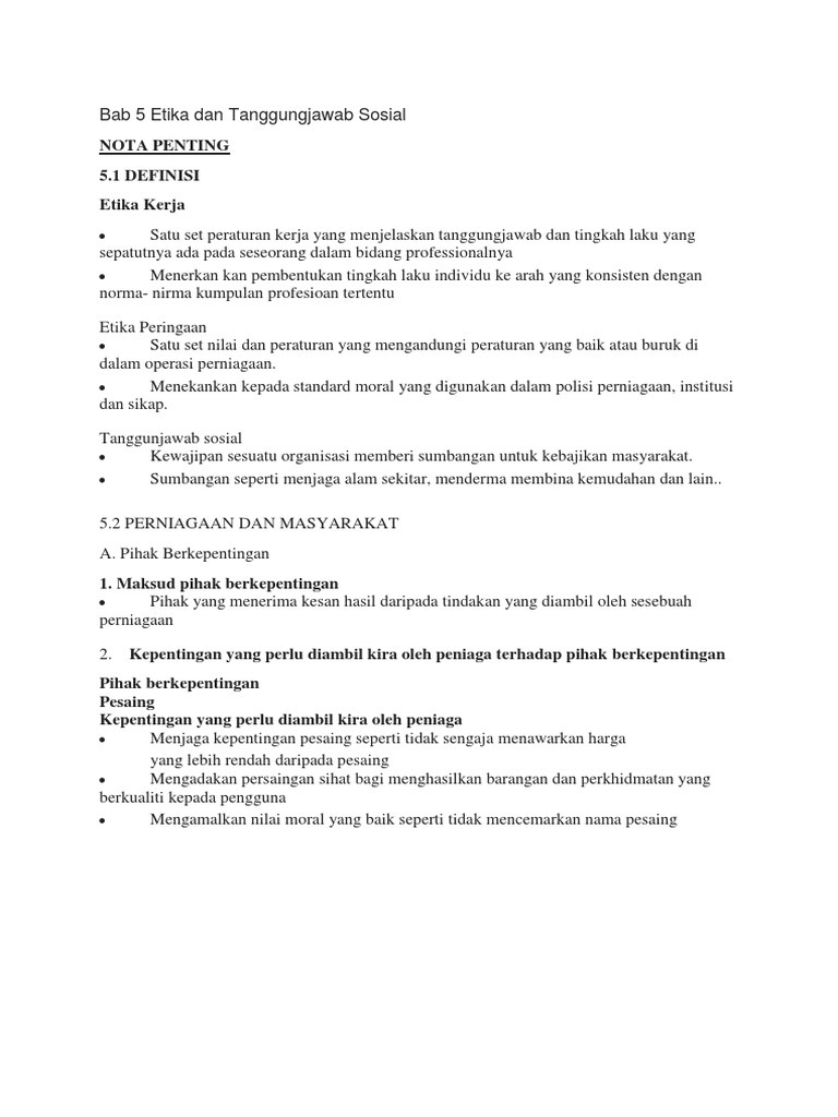 Nota Penting 5 1 Definisi Etika Kerja