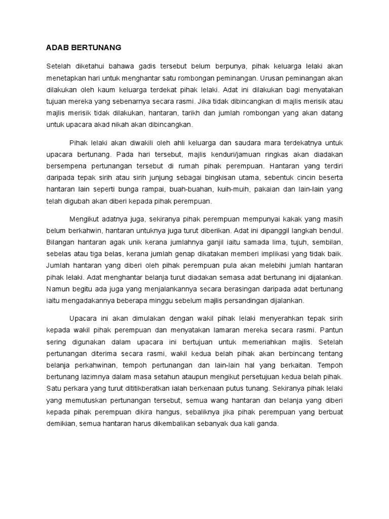 Adat Merisik Dan Bertunang Dalam Kalangan Masyarakat Melayu Kepala Ba