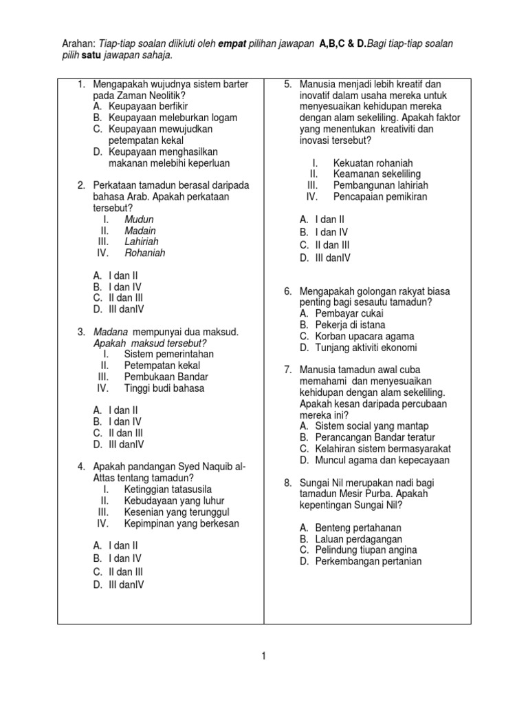Sejarah Kertas 1 Stpm Negeri Pahang 2012