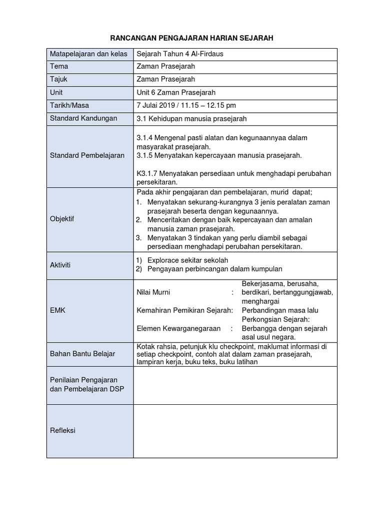 Rancangan Pengajaran Harian Sejarah