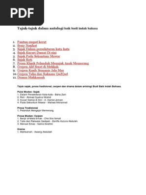 Rujukan Analisis Komsas Pt3 Antologi Baik Budi Indah Bahasa Novel Je Buddy Bookstore