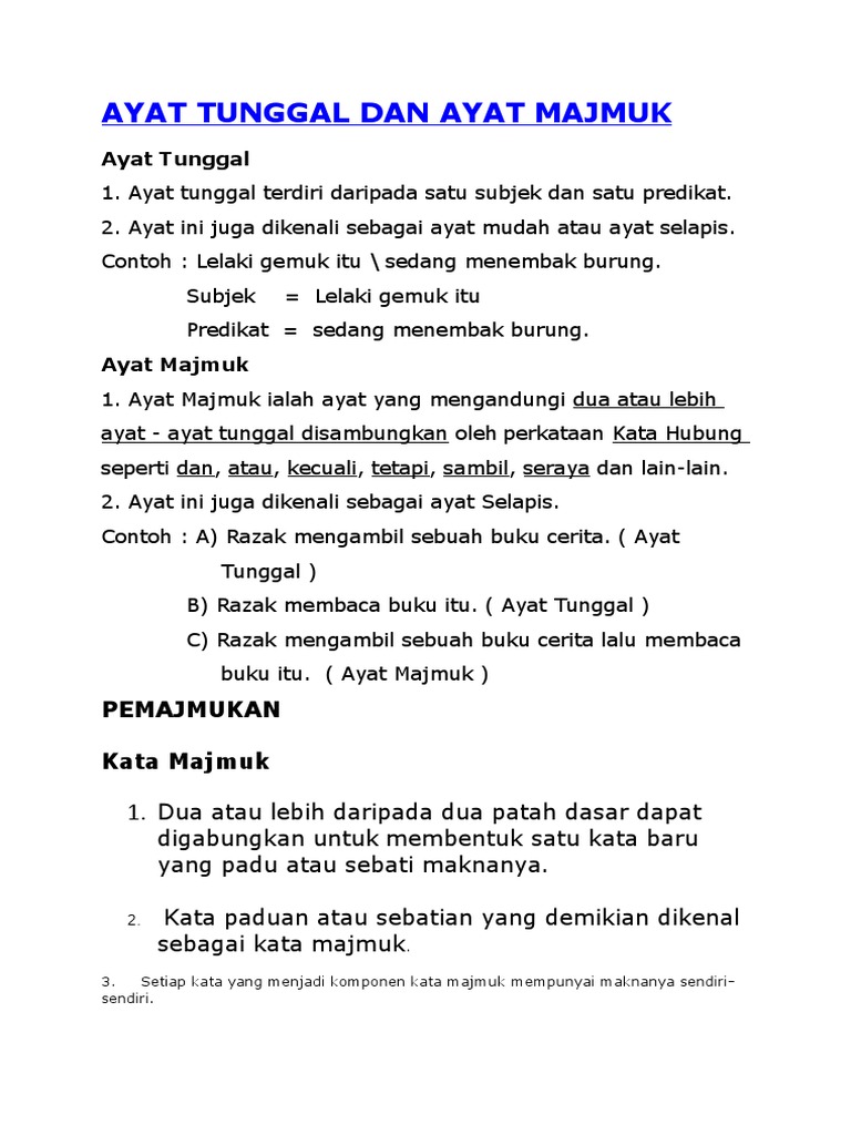 Ayat Tunggal Dan Ayat Majmuk Docx