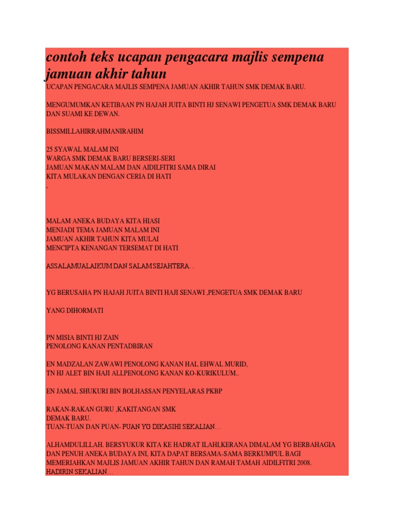 Doc Contoh Teks Ucapan Pengacara Majlis Sempena Jamuan Saadiah M Academia Edu