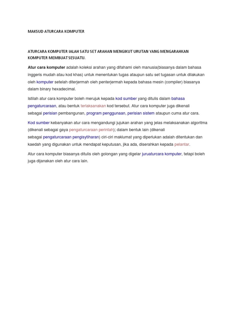 Aturcara Komputer Ialah Satu Set Arahan Mengikut Urutan