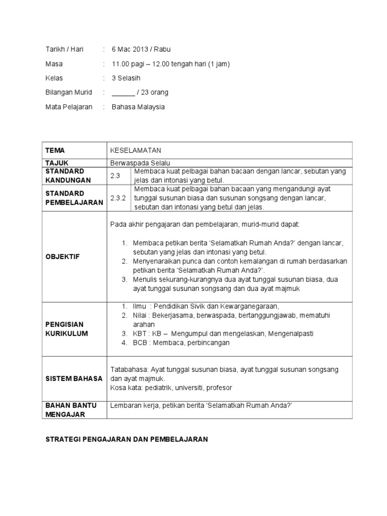 Band 1 Instrumen Bm Tahun 3 Contoh Je