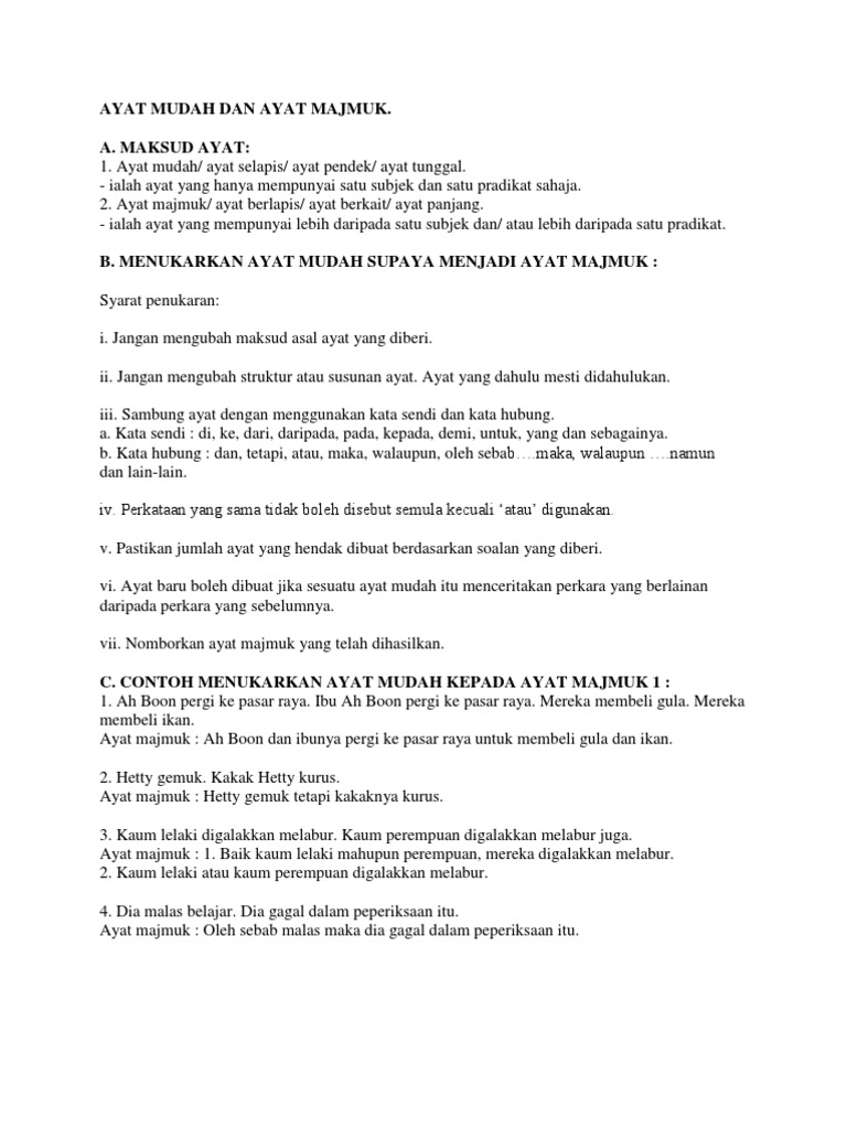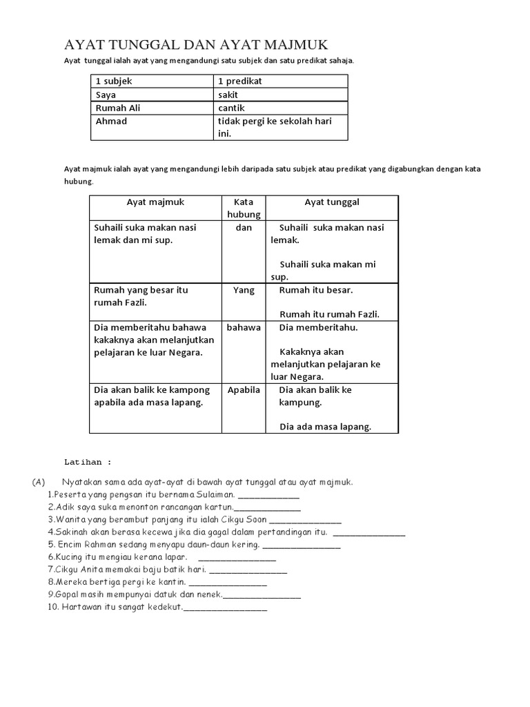 Sintaksis Latihan Pengukuhan Mencerakinkan Ayat Majmuk Kepada Ayat Tunggal