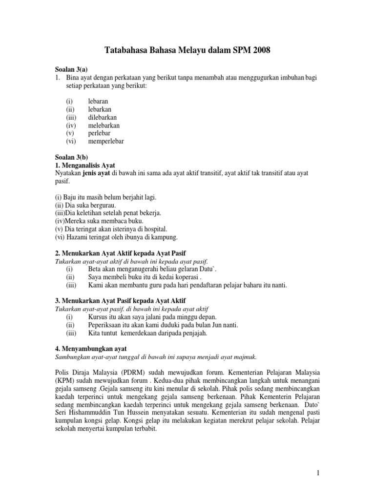 Kompilasi Soalan Spm 3b Jawapan Pdf Http Cikgusazali Blogspot Com Soalan 3 B Spm 2005 Kemahiran Sintaksis Tukar Ayat Pasif Di Bawah Kepada Ayat Aktif Course Hero