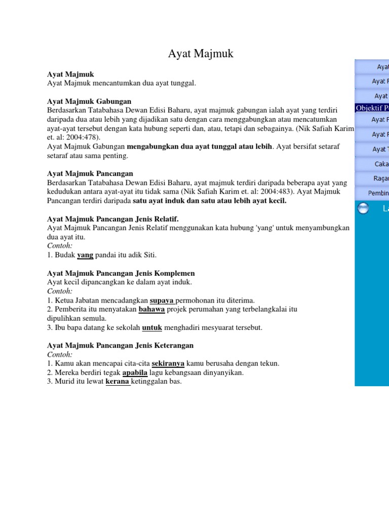 Contoh Ayat Majmuk Gabungan Ayat Dengan Ayat Rasmi H