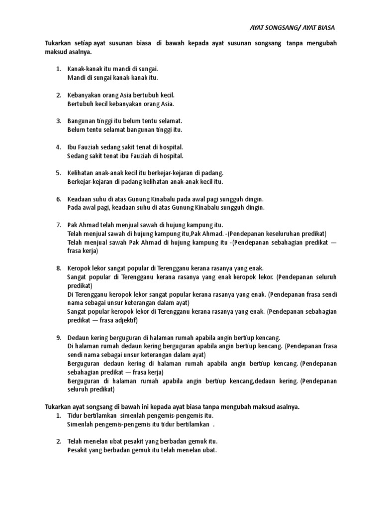 Ayat Songsang Kepada Ayat Biasa Spm
