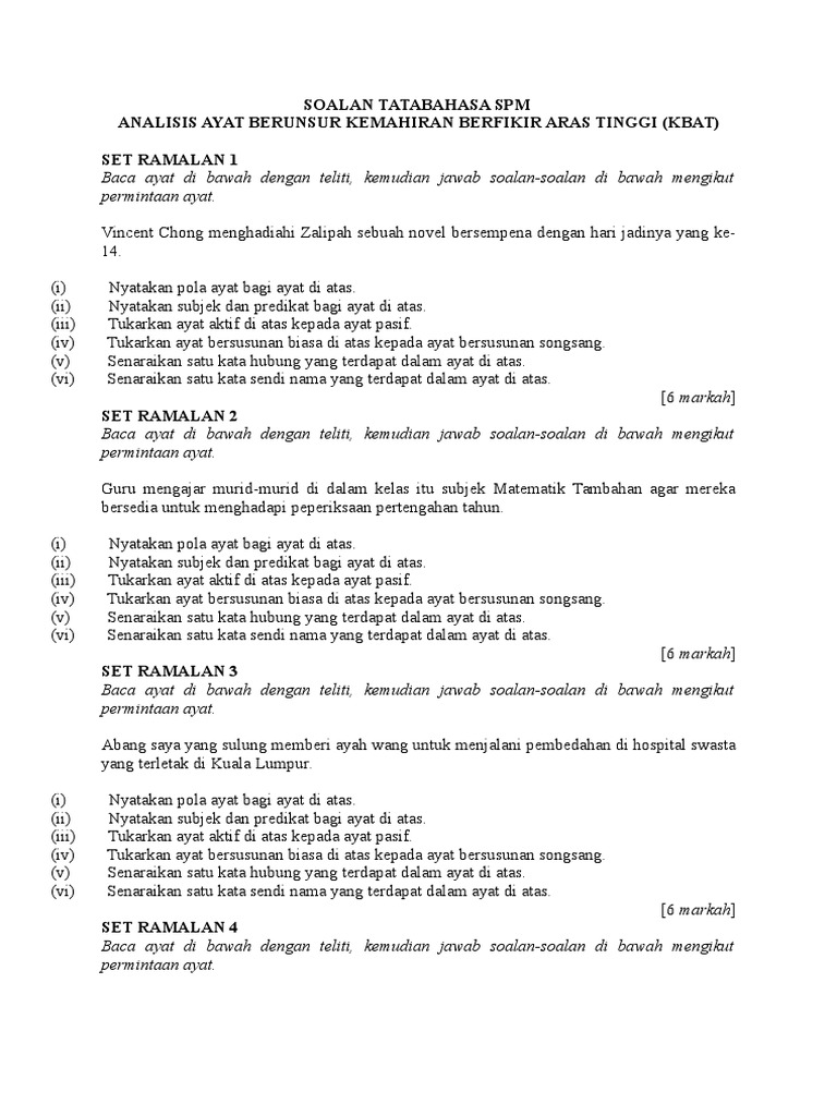 Soalan Tatabahasa Spm Kbat 1