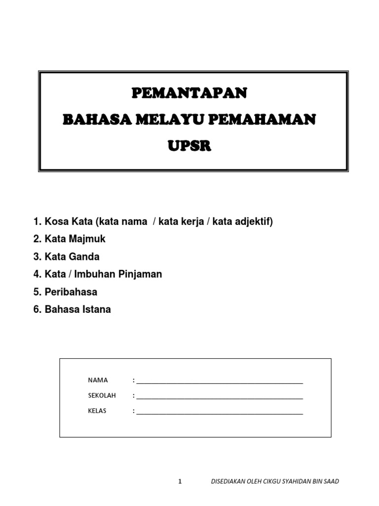 Kosa Kata Peribahasa Bahasa Istana Kata Ganda Kata Imbuhan Pinjaman Upsr 2018