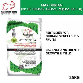 Real Strong Max Durian Fertilizer N 13 P2o5 3 K2o 21 Mgo 2 S 9 B 25kg Shopee Malaysia