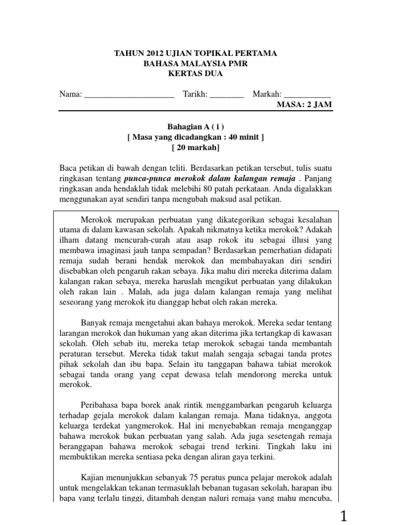 Contoh Karangan Pendek Bahasa Melayu Pt3 2019