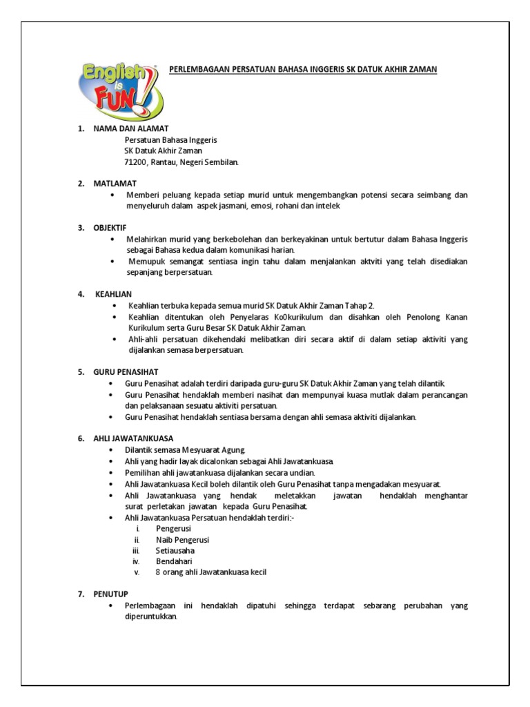 Perlembagaan Persatuan Bahasa Inggeris English Club 2019 Sekolah Menengah Kebangsaan Tawau Ii Pages 1 7 Flip Pdf Download Fliphtml5