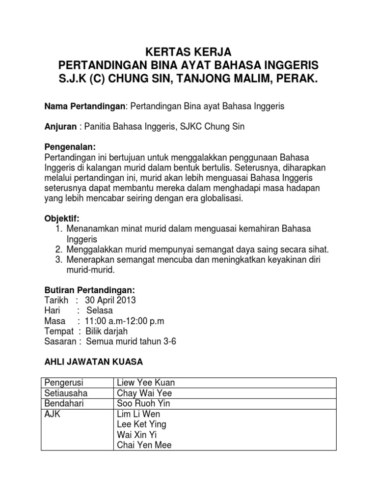 Sekolah Kebangsaan Rapat Setia 31350 Ipoh Perak Kertas Kerja Penubuhan Kelab Bahasa Inggeris