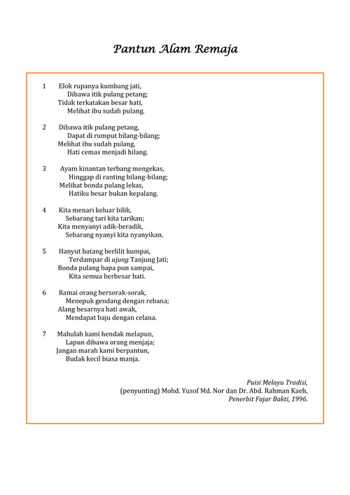 Pdf Pantun The Transformation From Oral Tradition Writing Tradition Into Performing Art Study On Malay Pantuns At Riau Archipelago Province
