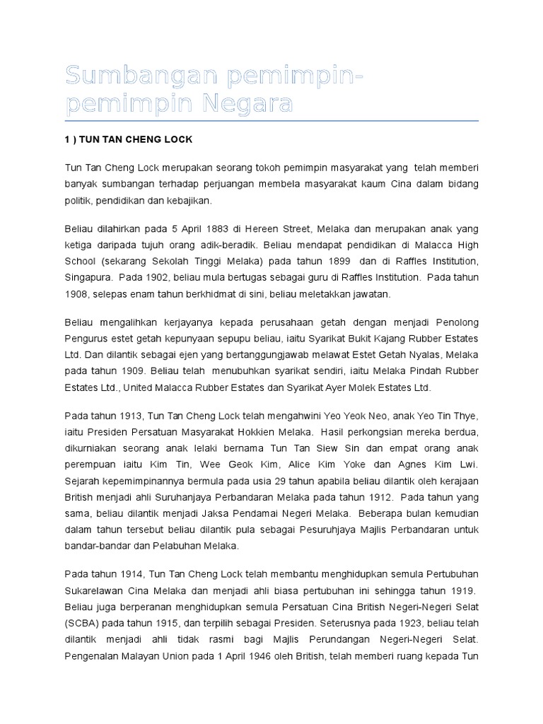 Jhev Atm Tun Tan Cheng Lock Merupakan Seorang Tokoh Yang Facebook