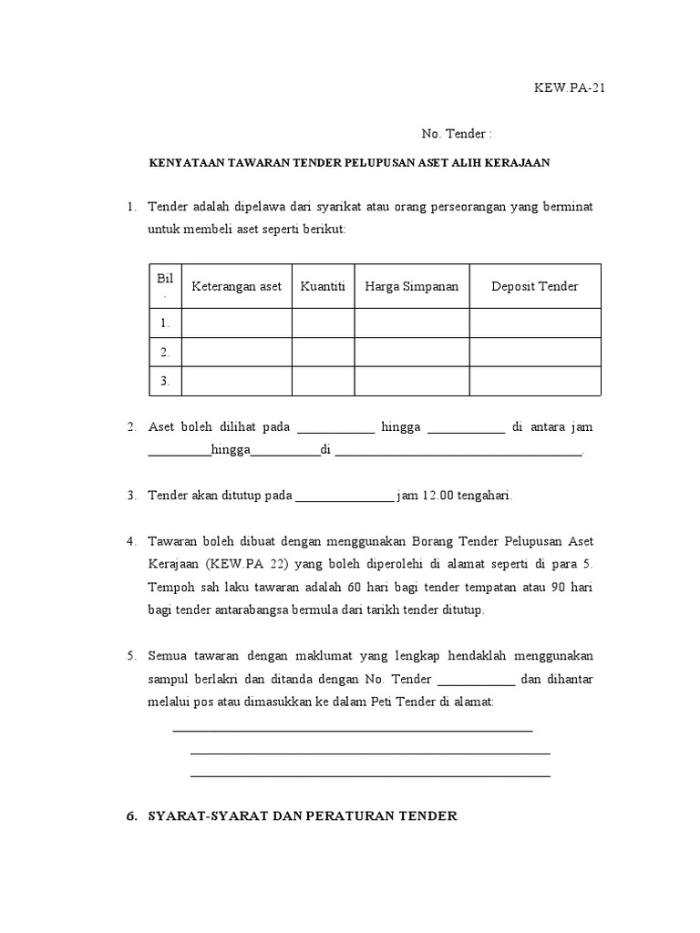 Kew Pa 21 Tawaran Tender Pelupusan