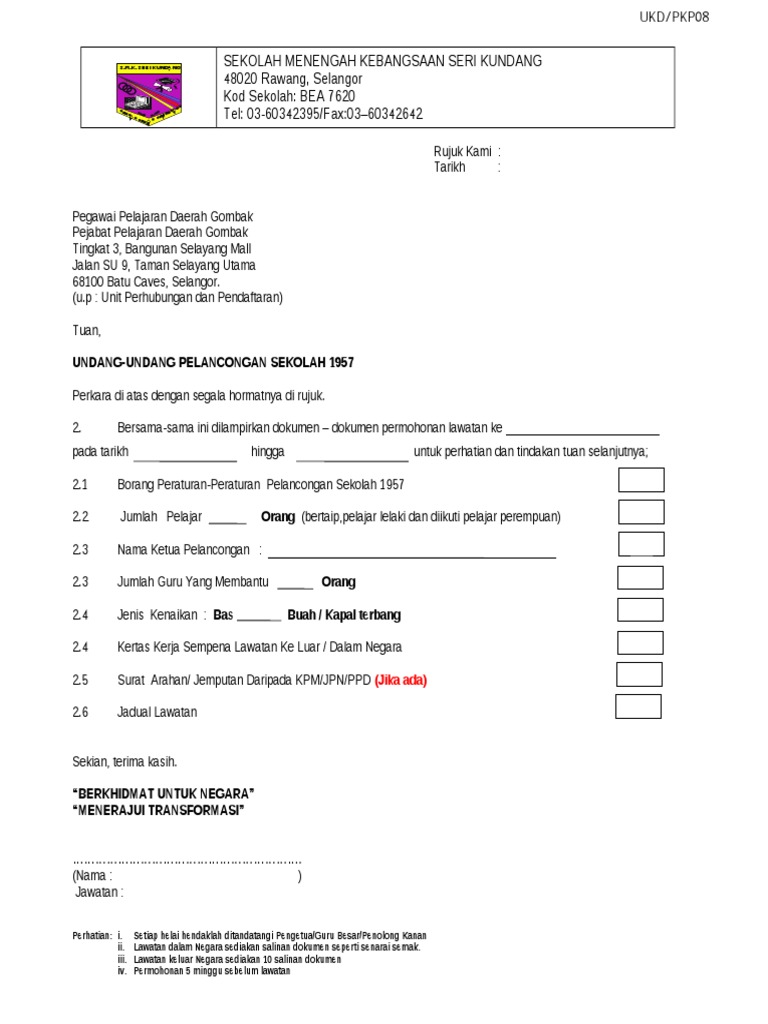 Sekolah Kluster Kecemerlangan Sekolah Memohon Kebenaran Lawatan Contoh Kertas Kerja Setiap Borang Pelancongan 1957 Mesti Disahkan Oleh Pengetua Guru Besar Atau Penolong Kanan Pdf Document