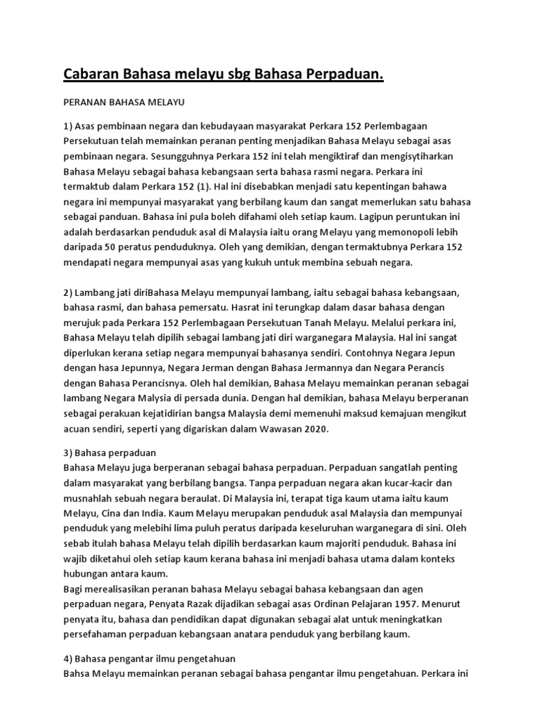 Cabaran Bahasa Melayu Dan Penyelesaian Docx
