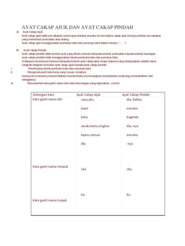 Cakap Ajuk Dan Cakap Pindah Pdf Document