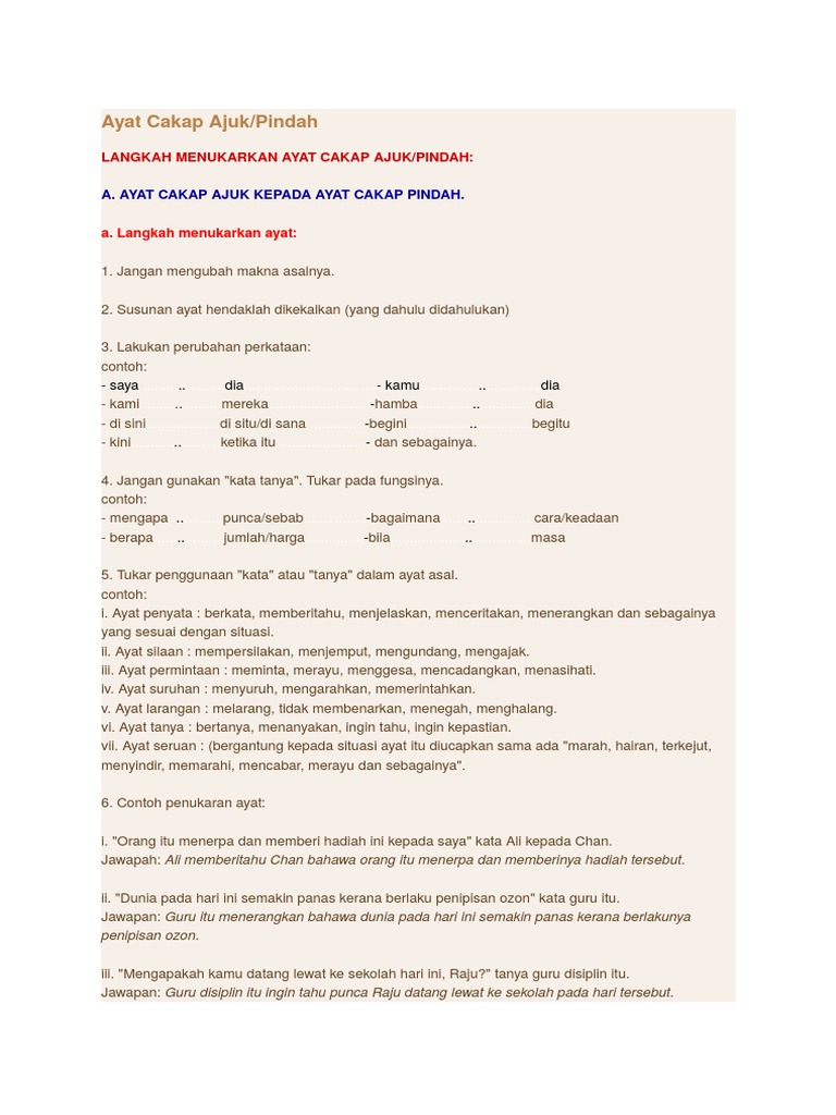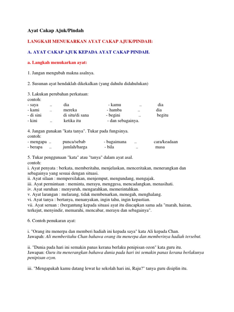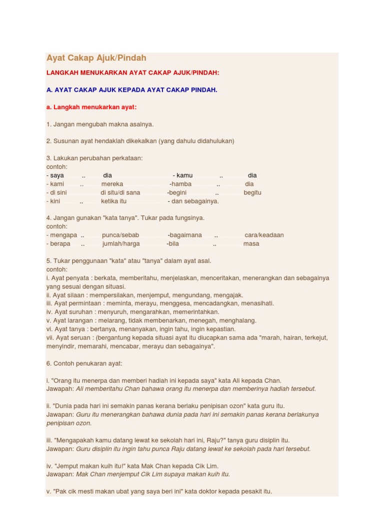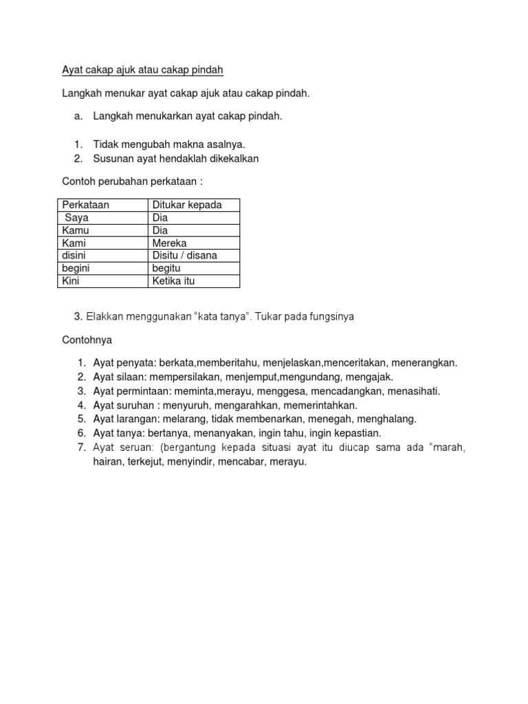 Cakap Ajuk Kepada Cakap Pindah Docx