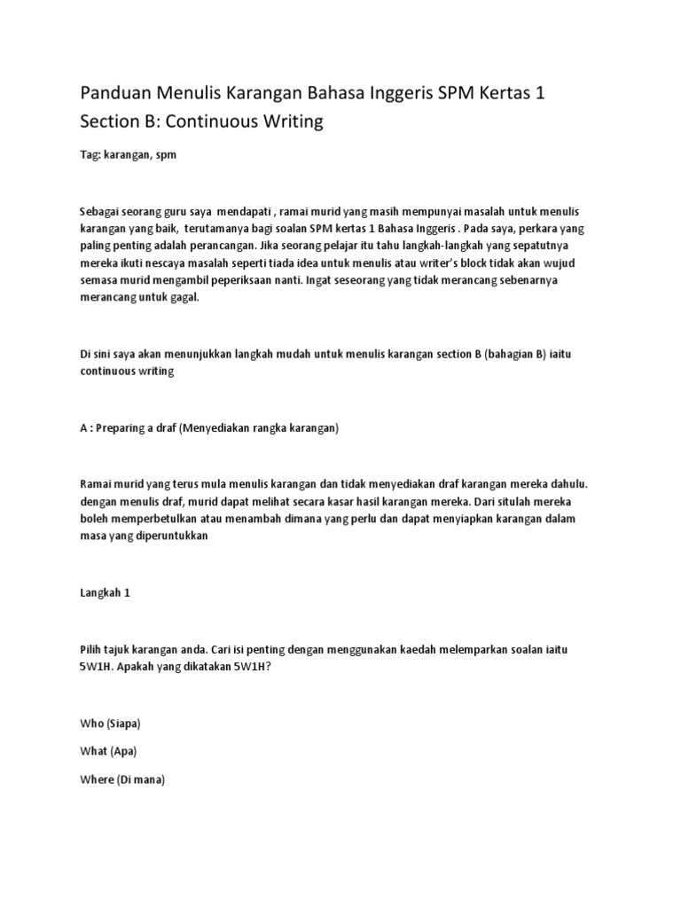 Panduan Menulis Karangan Bahasa Inggeris Spm Kertas 1 Section B
