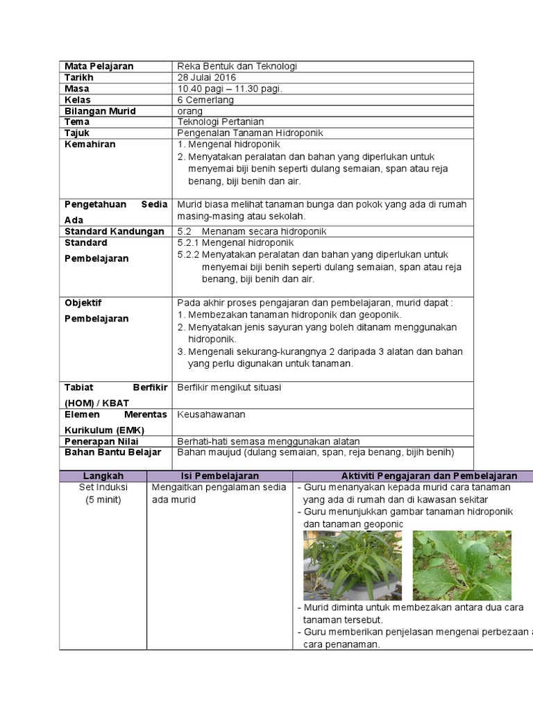 Kemahiran Hidup Bersepadu Tahun 6 Hidroponik