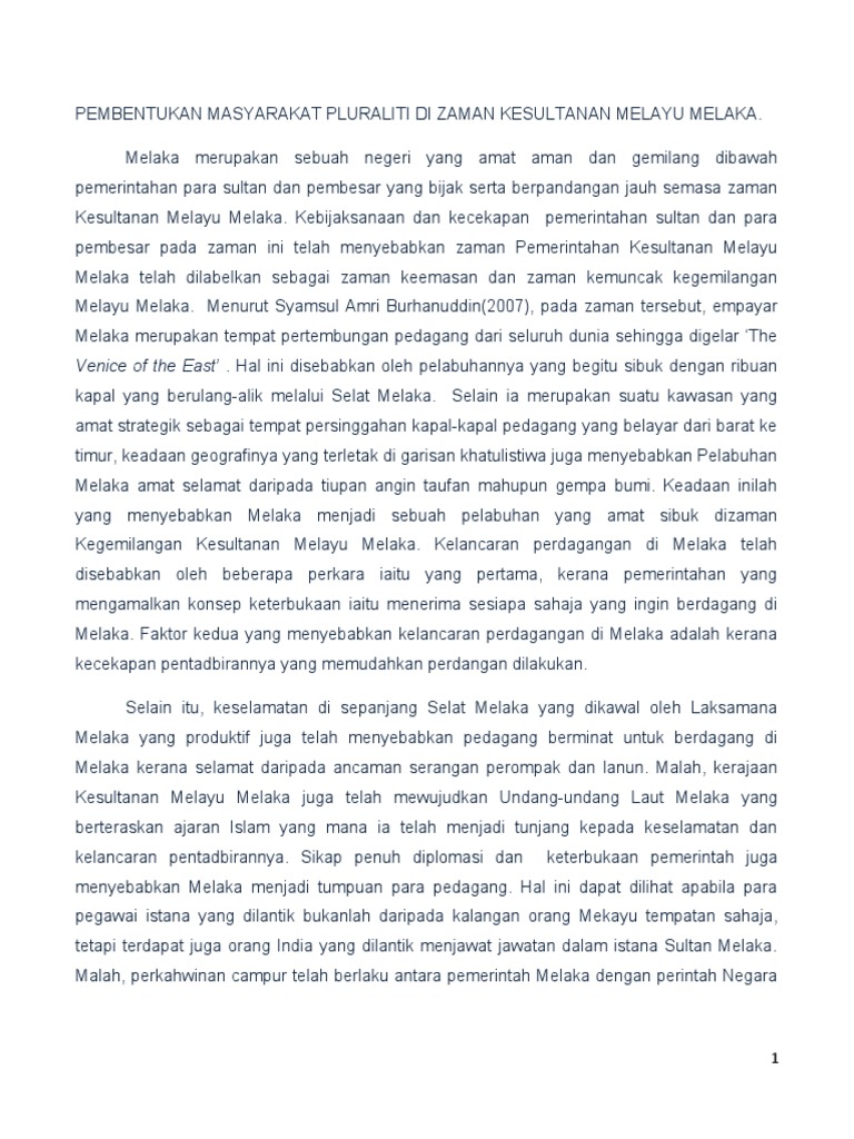 Pembentukan Masyarakat Pluraliti Di Zaman Kesultanan Melayu Melaka