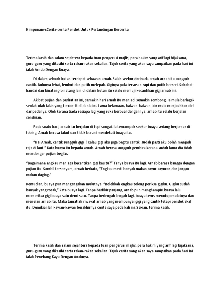 Himpunan Cerita Cerita Pendek Untuk Pertandingan Bercerita