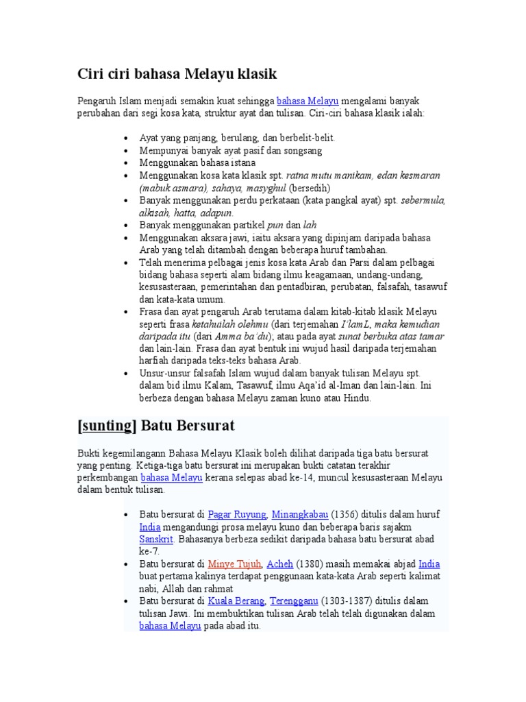 K2 Bmk Pada Batu Bersurat Ciri Bahasa Melayu Klasik