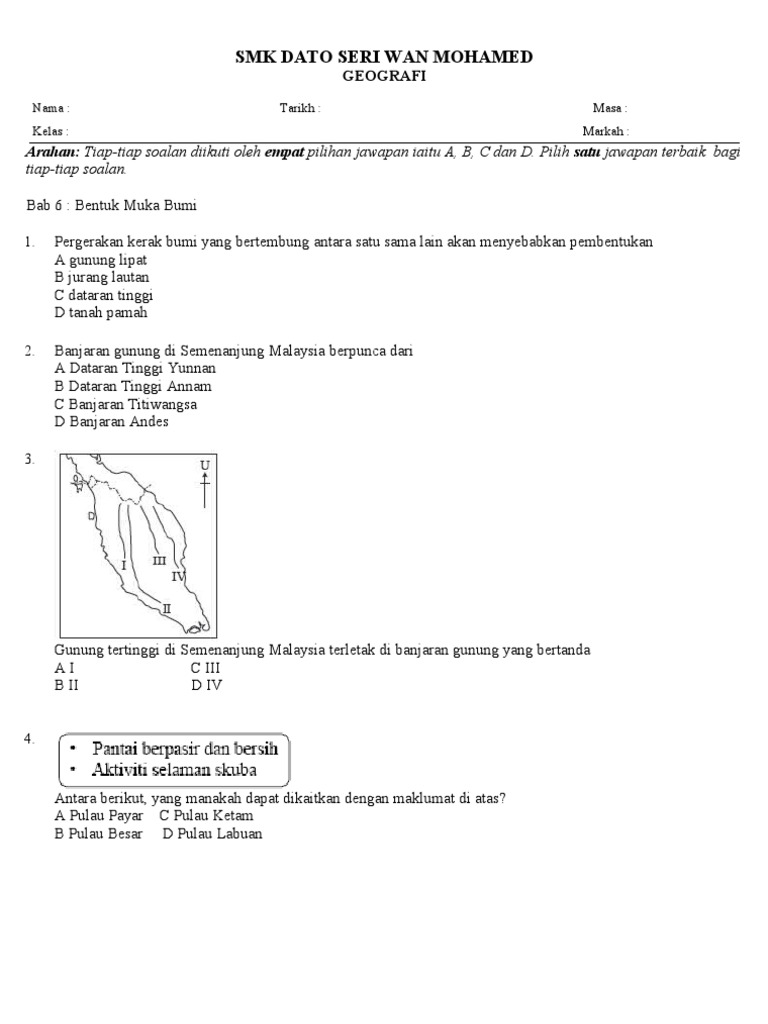Contoh Soalan Peperiksaan Akhir Tahun Bahasa Melayu Tingkatan 1