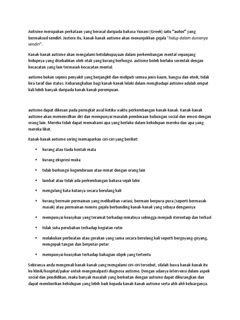 Apakah Itu Autisme Ya Semalam Klinik Kanak Kanak Nilai Facebook