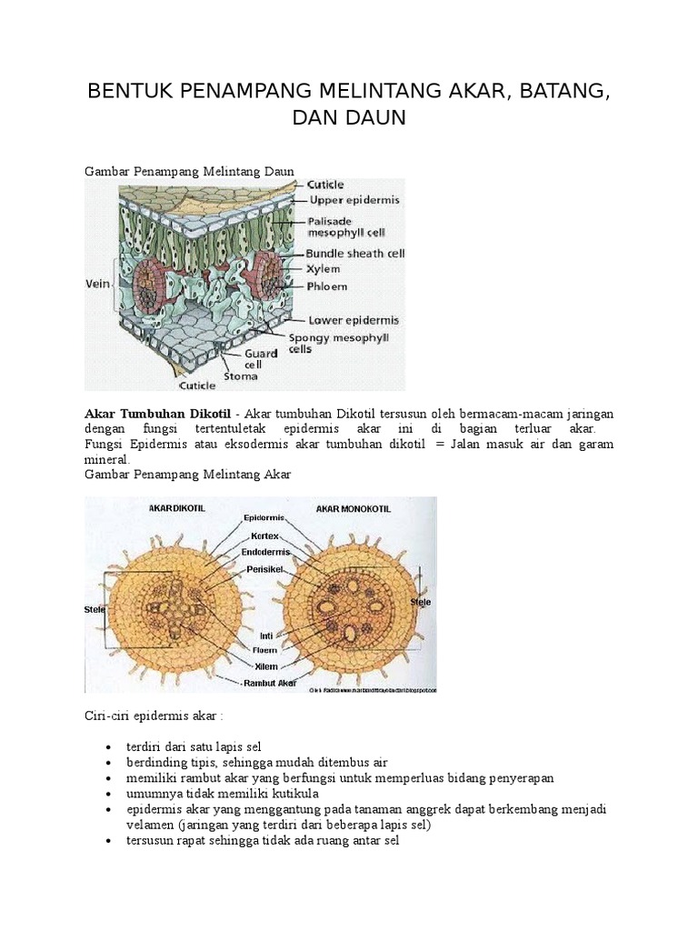 Struktur Batang Tumbuhan Dikotil Dan Monokotil Berbagai Struktur