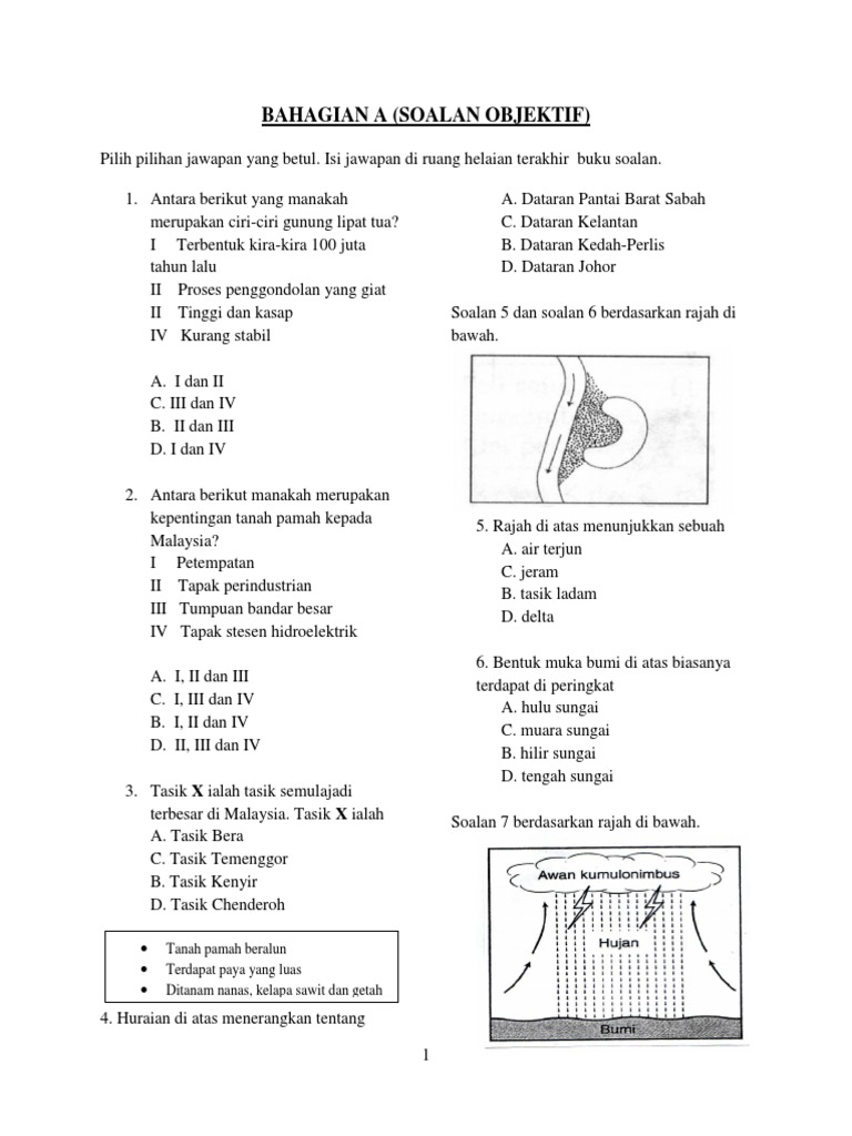 Bahagian A Soalan Objektif Tanah Pamah Beralun Terdapat Paya Yang Luas Ditanam Nanas Kelapa Sawit Dan Getah