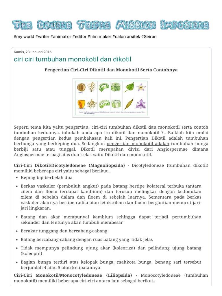 Tumbuhan Dikotil Dan Monokotil Rumushitung Com