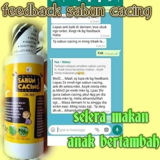 Sabun Cacing Anak Tiada Selera Makan Kerap Muntah Cirit Birit Badan Kerap Tak Sihat Dan Demam Etc Shopee Malaysia