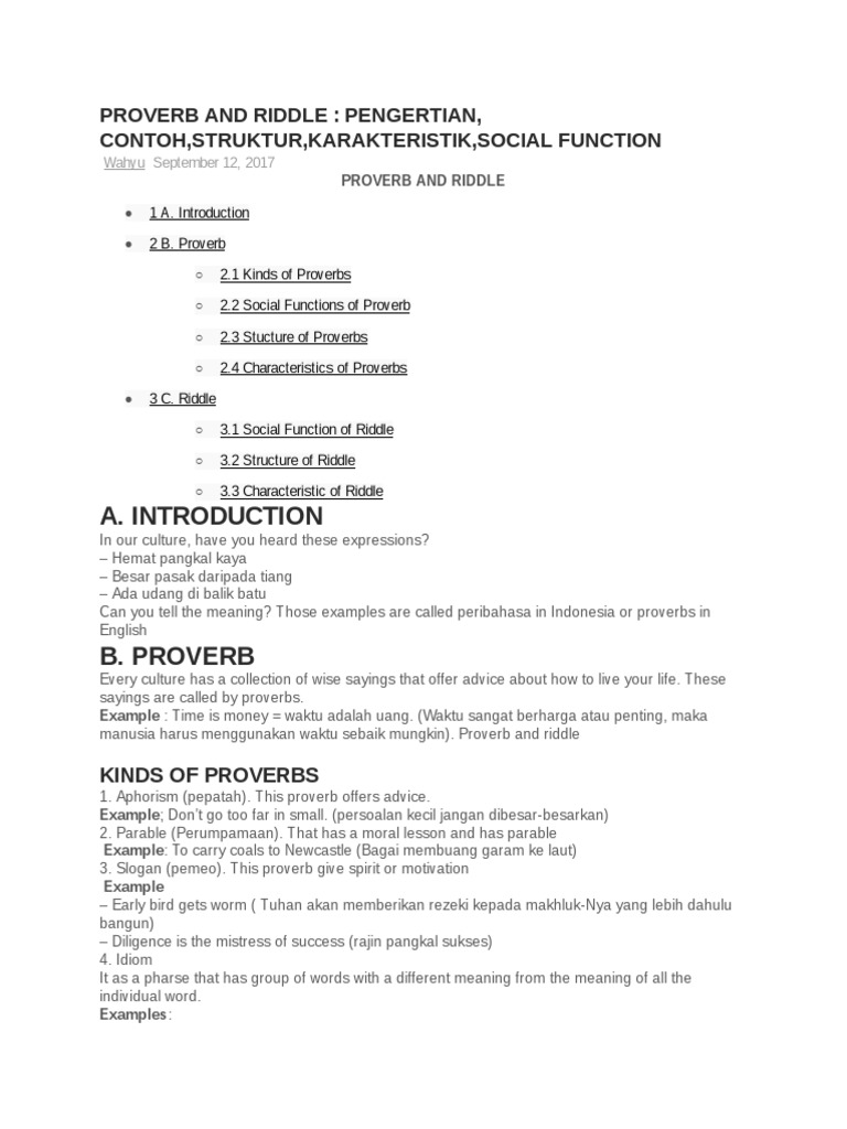 Proverb And Riddle Pengertian Contoh Struktur Karakteristik Social Function Google Docs Riddle Proverb