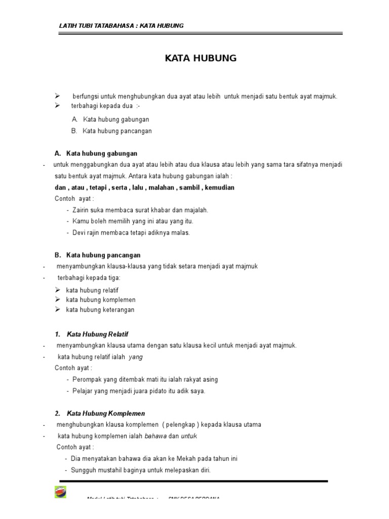 Kata Hubung Pancangan Relatif Dan Komplmeen Nota Dan Latihan Docx