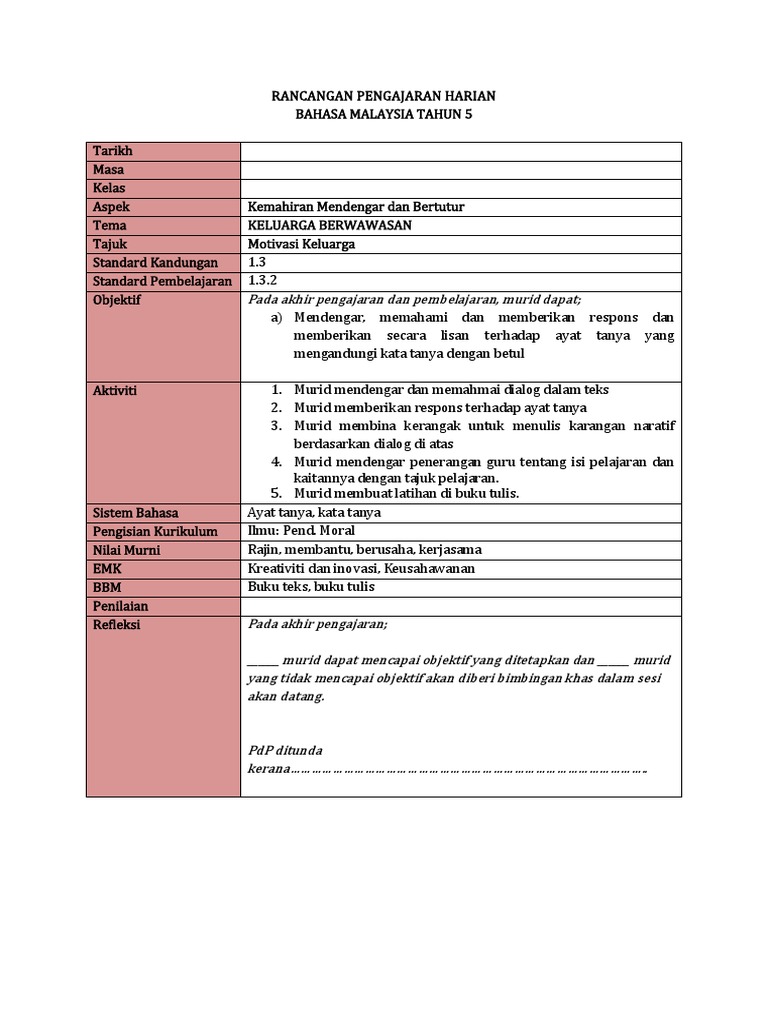 Rancangan Pengajaran Harian Keluarga Bahagia Latest