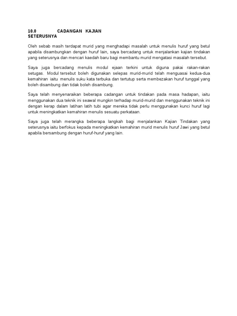 Contoh Penulisan Cadangan Kajian Seterusnya