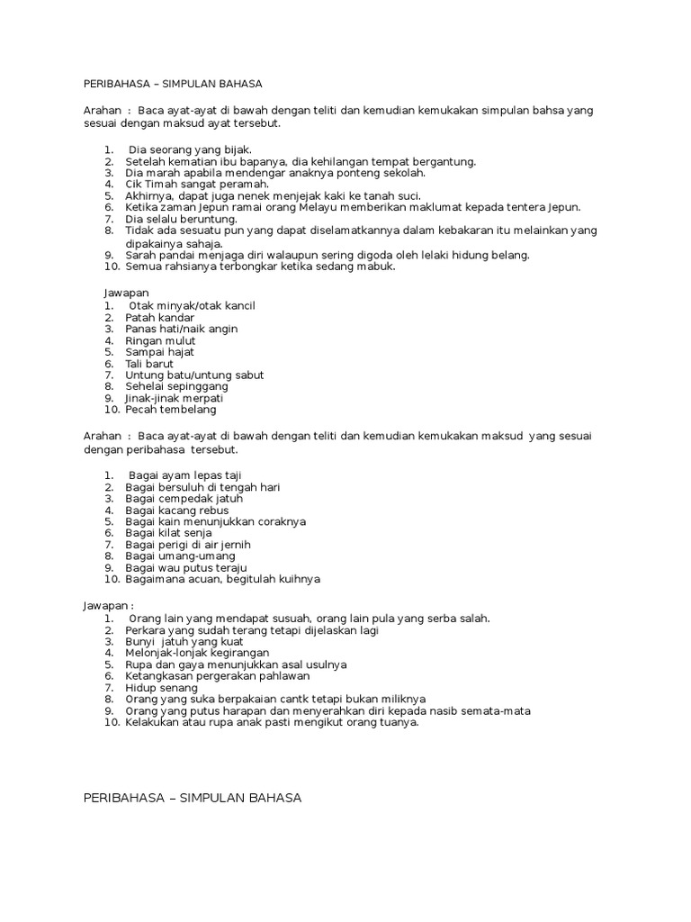 Peribahasa Tingkatan Dua Ogos 2013 Pdf Document