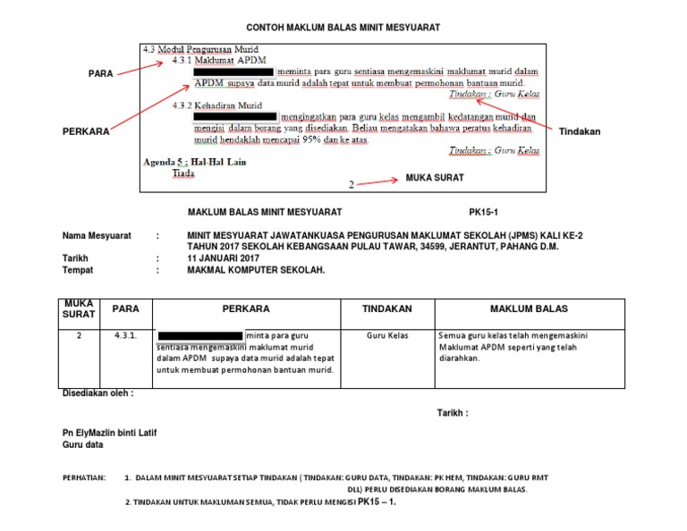 Contoh Maklum Balas Minit Mesyuarat
