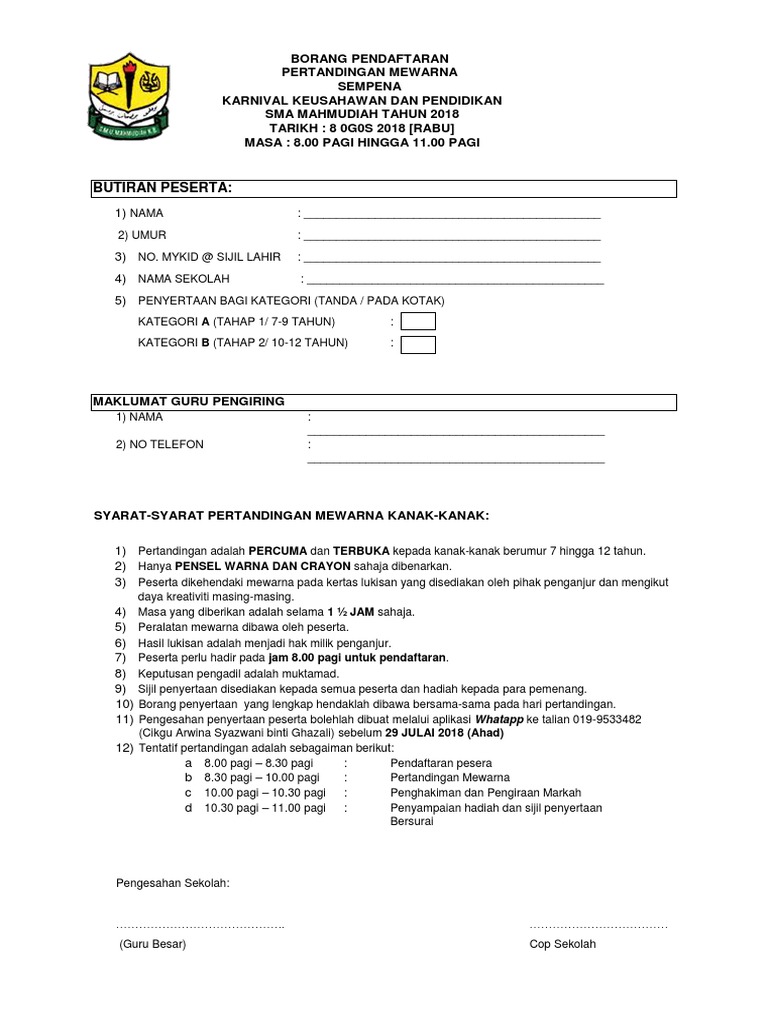 Contoh Borang Penyertaan Pertandingan Mewarna