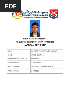 Laporan Reflektif Pismp Jun 2018 Semester 4 Pengurusan Pendidikan Jasmani Pjms 3092
