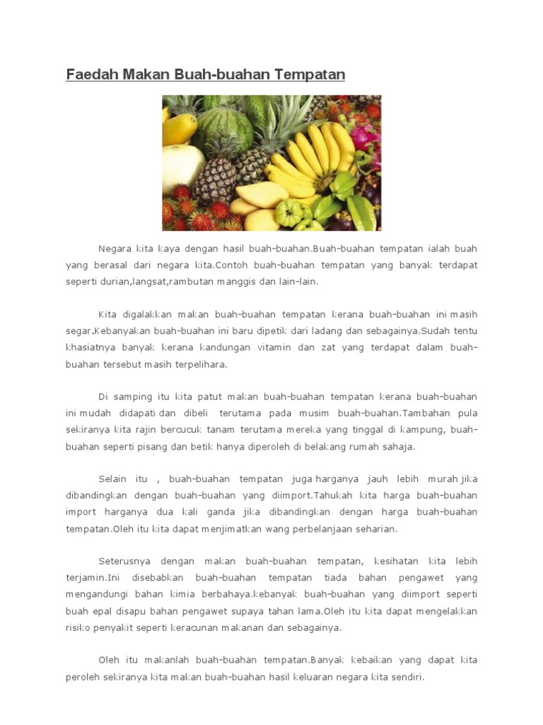 Karangan Kebaikan Buah Buahan Tempatan Docx Document