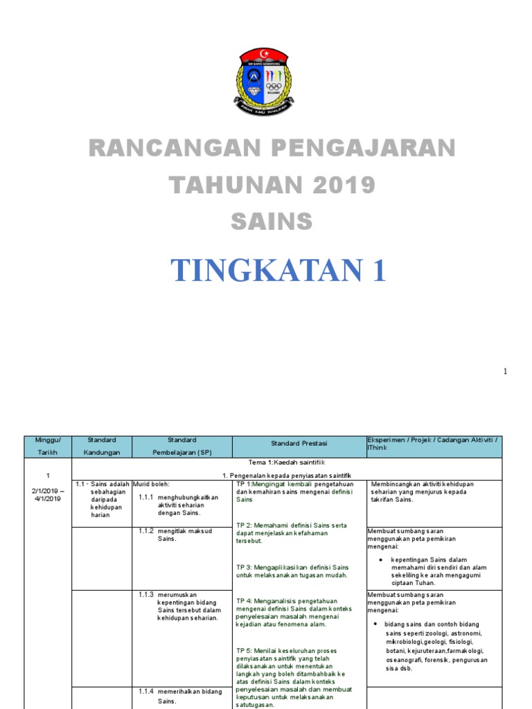Rpt Sains Tingkatan 1 Sumber Pendidikan Rpt Sains F1 2018