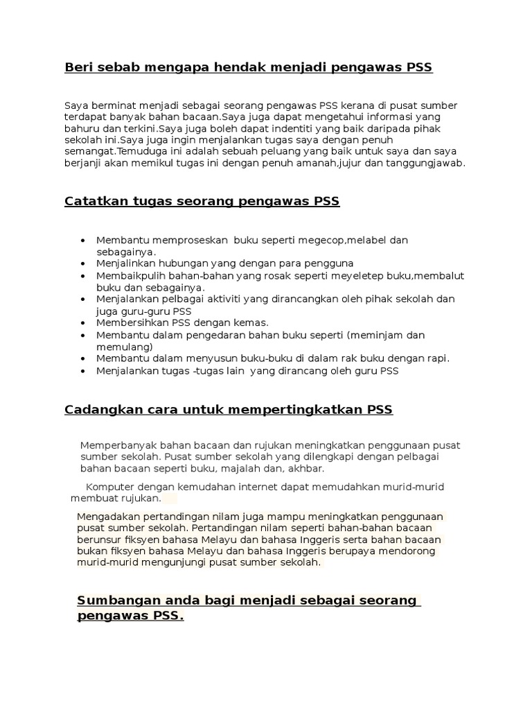 Beri Sebab Mengapa Hendak Menjadi Pengawas Pss