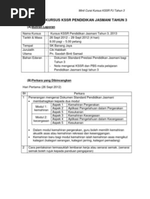 Minit Curai Kursus Kssr Pendidikan Jasmani Tahun 3