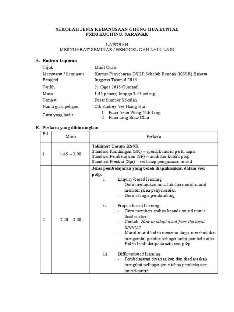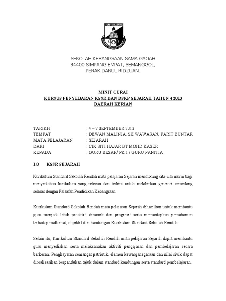 Contoh Minit Curai Kursus Kssr Tahun 4 Sejarah 2013